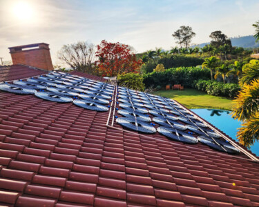 No Sistema de Aquecimento Solar para Piscina são utilizados coletores que ficam sobre o telhado ou em locais com maior exposição ao sol e sem sombras.